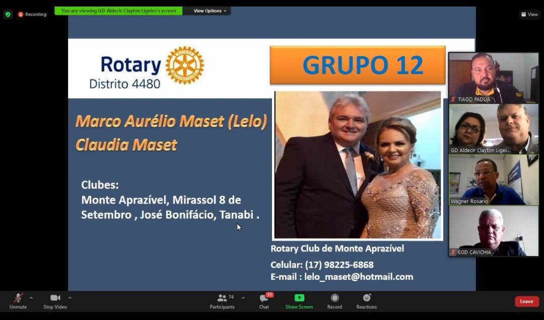 Nós do Rotary Club de Monte Aprazível-SP, representado pelo seu Presidente Eleito Tiago Fernandes de Pádua junto ao Governador Assistente Lelo Maset, participaram do Pré-PETS (Seminário de Treinamento de Presidentes Entrantes). Na oportunidade, Ligeiro fez a apresentação da equipe distrital – governadores assistentes e presidentes de comissões. Os presidentes eleitos dos clubes tiveram a oportunidade de se apresentar ao Distrito. Os próximos encontros estão marcados para os dias 24 (GATS) e 25 (PETS). A participação de todos é muito importante para alinhamento de ideias e conhecimento das propostas para o ano rotário 2021-22, cujo lema será Servir para Transformar Vidas.