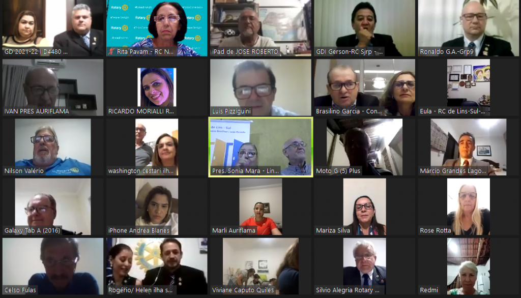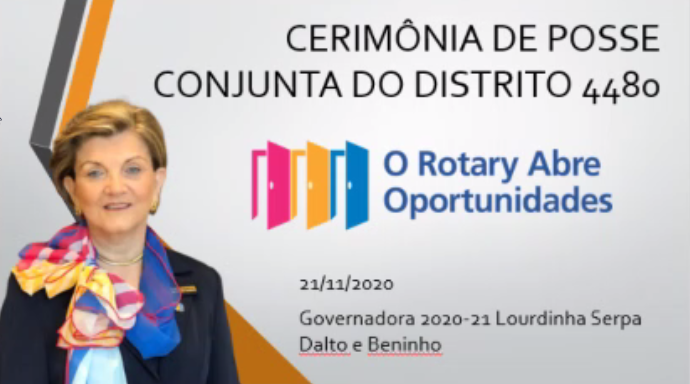 O Distrito 4480 alcançou total sucesso ao empossar 45 novos associados na cerimônia de posse coletiva realizada na noite do dia 21 de novembro. A coordenação geral esteve a cargo da governadora Lourdinha Serpa Dalto e cerca de 200 pessoas acompanharam a reunião on-line, pela plataforma Zoom. O convidado especial da noite foi o diretor do Rotary para a América do Sul, Mário César de Camargo. Também estiveram presentes integrantes do Colégio de Governadores (EGs), governadores assistentes, membros da equipe distrital, rotarianos, rotaractianos, interactianos, kidianos e senhoras das Casas da Amizade.