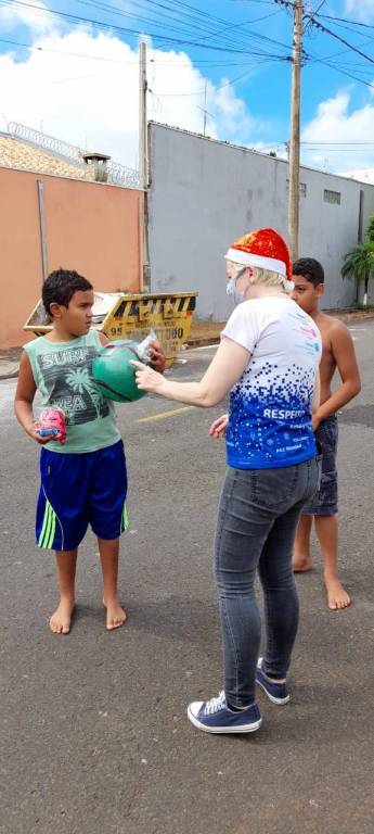 Foi feita a entrega de, aproximadamente, 800 presentes educativos para meninos e meninas e saquinhos-surpresa com doces pelo Papai Noel e integrantes dos clubes.