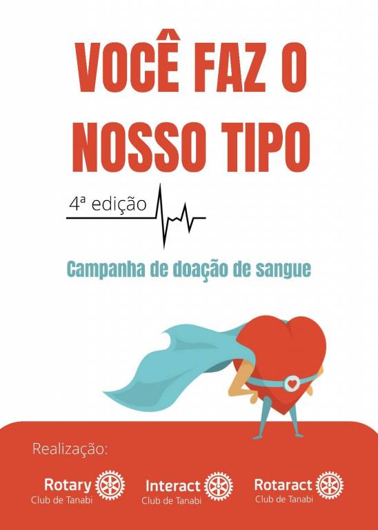 A Família Rotária de Tanabi (Rotary, Rotaract e Interact) agradece a todos que participaram da 4ª edição da Campanha de doação de sangue “VOCÊ FAZ O NOSSO TIPO” e ajudaram a compartilhar vida e esperança pra quem precisa.
