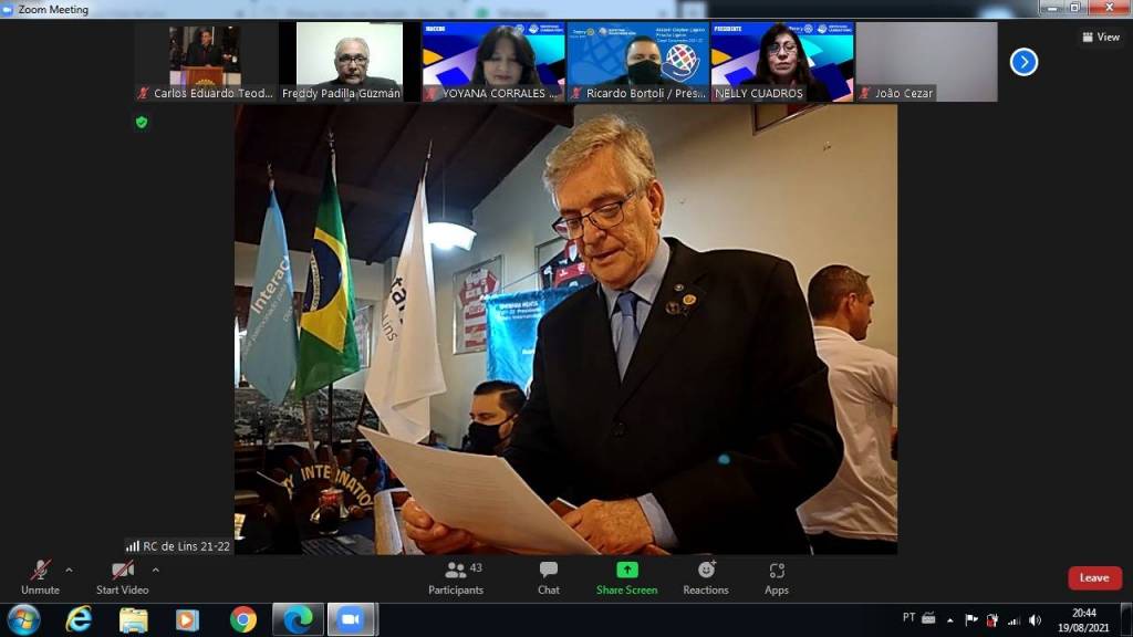 Os Rotary Clubs de Lins – Brasil e de Arequipa – Peru se reuniram na noite do dia 19 de agosto para assinatura dos certificados de CLUBES IRMÃOS. Estiveram presentes a governadora Ana Cecília Lopes - Distrito 4455 e o governador Aldecir Clayton Ligeiro - Distrito 4480. Falaram o Governador Israel Antonio Alfonso e o futuro presidente do Arequipa Oeste, Freddy Padilha, que iniciaram o movimento de aproximação de Lins e Arequipa, que resultou em fatos muito importantes para as duas cidades que se tornaram irmãs e suas universidades. Os presidentes Ricardo Bortoli e Nelly Cardenas, assinaram os documentos que tornaram irmãos os dois Rotary Clubs. O governador Ligeiro manifestou a sua emoção e já iniciou conversas com o EGD Israel para ampliar as ações entre os dois Distritos, a partir do próximo ano.