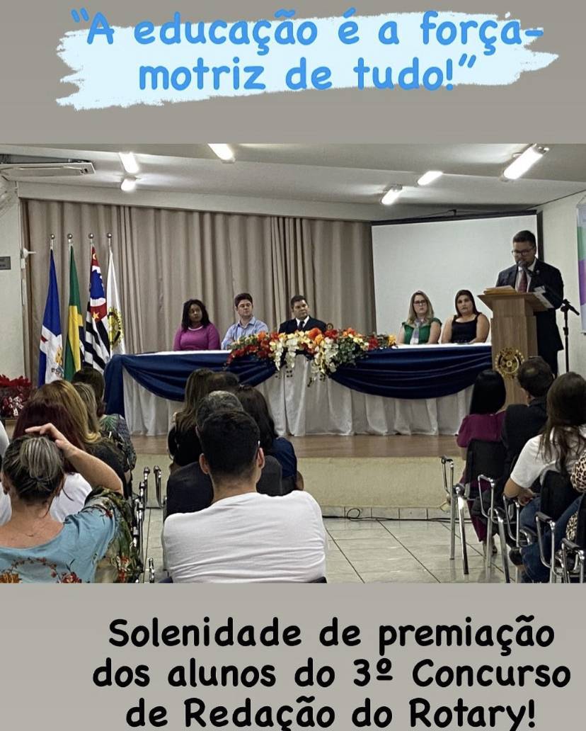Em solenidade realizada ontem, no Espaço Cultural Mário Fava, na presença do prefeito, diretora de educação, diretores, professores e alunos nas escolas públicas de Bariri, os companheiros do Rotary Club puderam testemunhar a felicidade estampada no rosto das crianças ao receberem os prêmios pelas melhores redações. Escolas e demais alunos ganharam certificados de participação. Bolsas de estudos tamebm foram outorgadas aos alunos vencedores. Em anexo, nas fotos, há registros de alguns momentos e depoimentos de dois alunos, que contagiaram os rotaríamos. Evento gratificante e sensação de dever cumprido enaltecendo, sobretudo, o papel do Rotary na sociedade, "Dar de si antes de pensar em si" e "Mais se beneficia quem melhor serve".