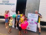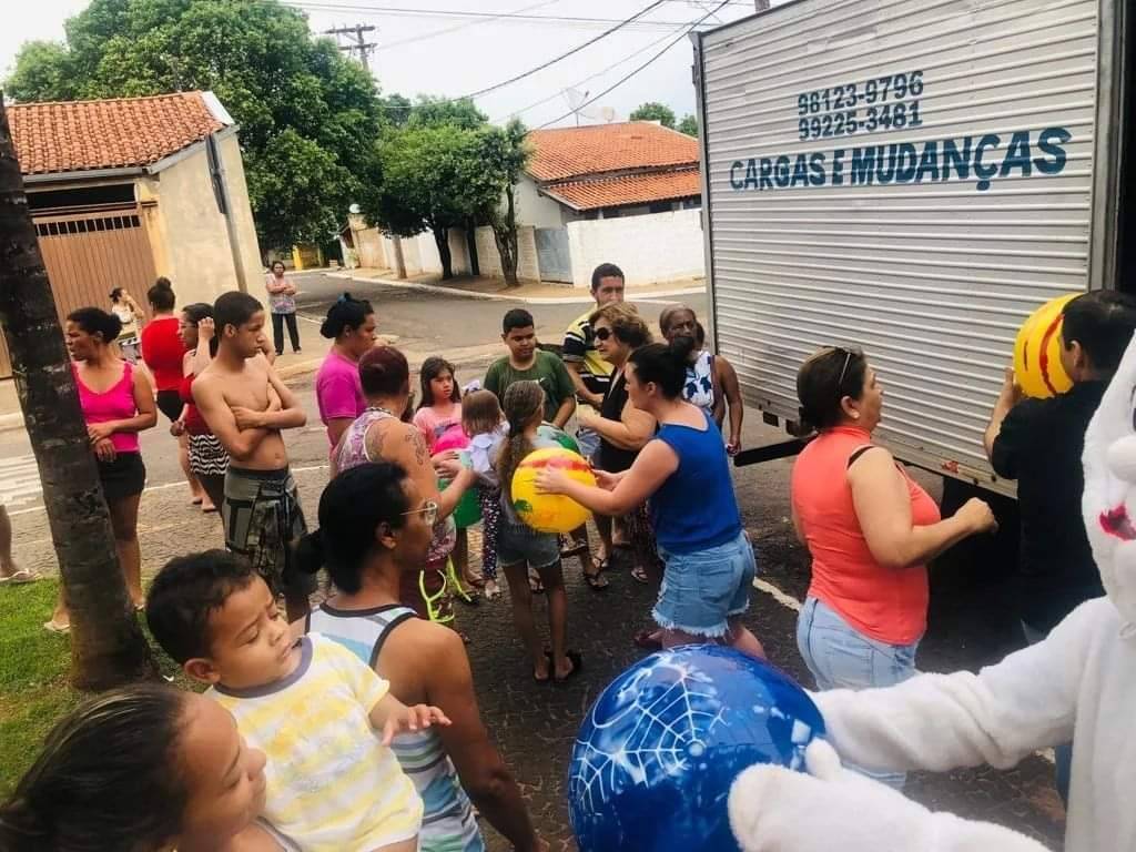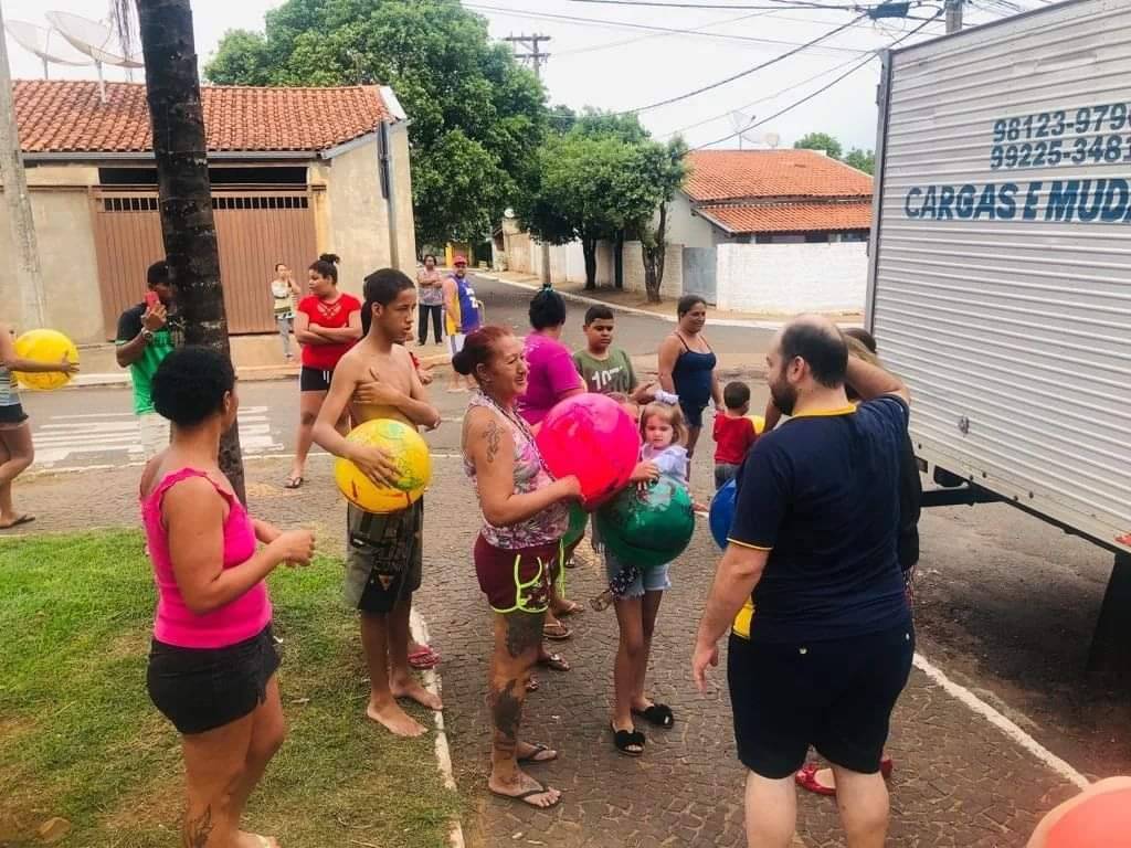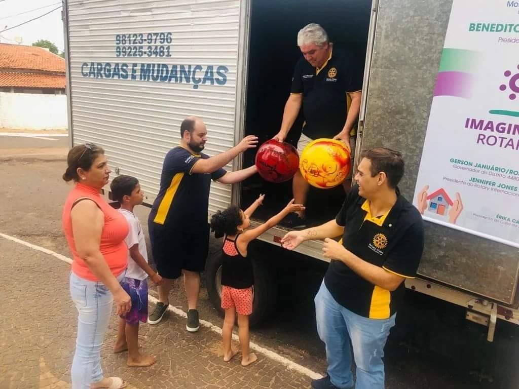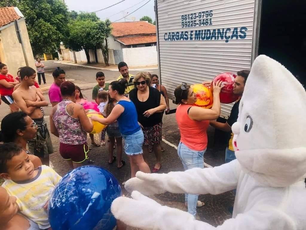 Hoje, com a companhia do Zé Gotinha, o clube distribuiu bolas para as crianças.