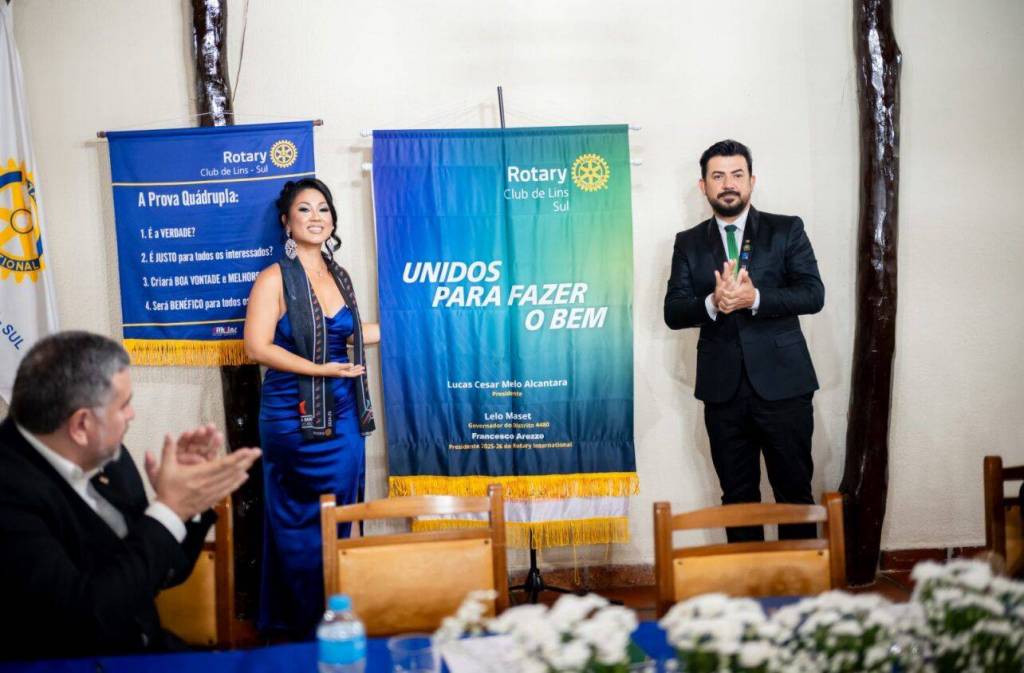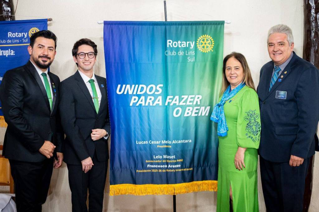 Com alegria participamos da cerimônia de transmissão de cargos do Rotary Club de Lins - Sul, onde a Presidente Alessandra passou o comando ao companheiro Lucas, dando início ao ano rotário 2025-2026.