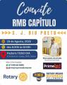 O flyer tem um design limpo e profissional, com fundo claro e elementos gráficos organizados. No topo, há o título em destaque: “Convite RMB Capítulo S. J. Rio Preto”, indicando que se trata de um convite para um evento do Rotary Means Business Fellowship, capítulo São José do Rio Preto Diamante.