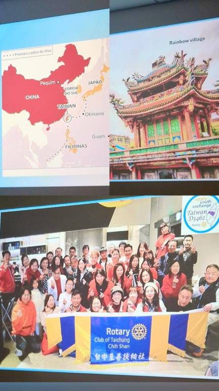 Apresentou a família hospedeira que irá recebê-lo. Também fez uma apresentação sobre o Brasil, que fará no Rotary Club em Taiwan.