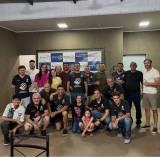 Alguns participantes vestem camisetas pretas com um logotipo que representa uma mão estilizada segurando um coração, envolvidos com uma causa solidária que foi a entrega do PIN para o intercambiário da Índia. O ambiente é simples e informal, reforçando a ideia de um encontro promovido pelo Rotary Club de Severínia.