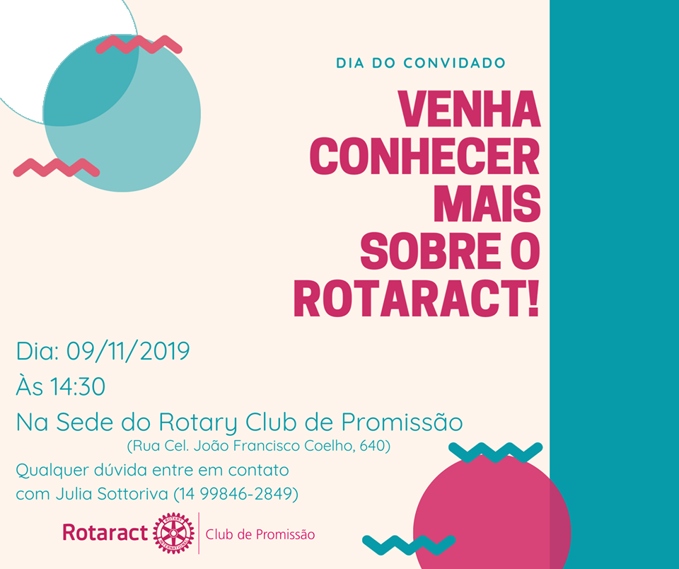 No dia 09/11/2019 foi realizado o 1º Dia do Convidado do Rotaract Club de Promissão no ano rotário 2019/2020. Foi realizada uma pequena palestra sobre o que é o Rotaract e Rotary em geral para os novos membros e logo após houve uma confraternização com os membros do clube.
