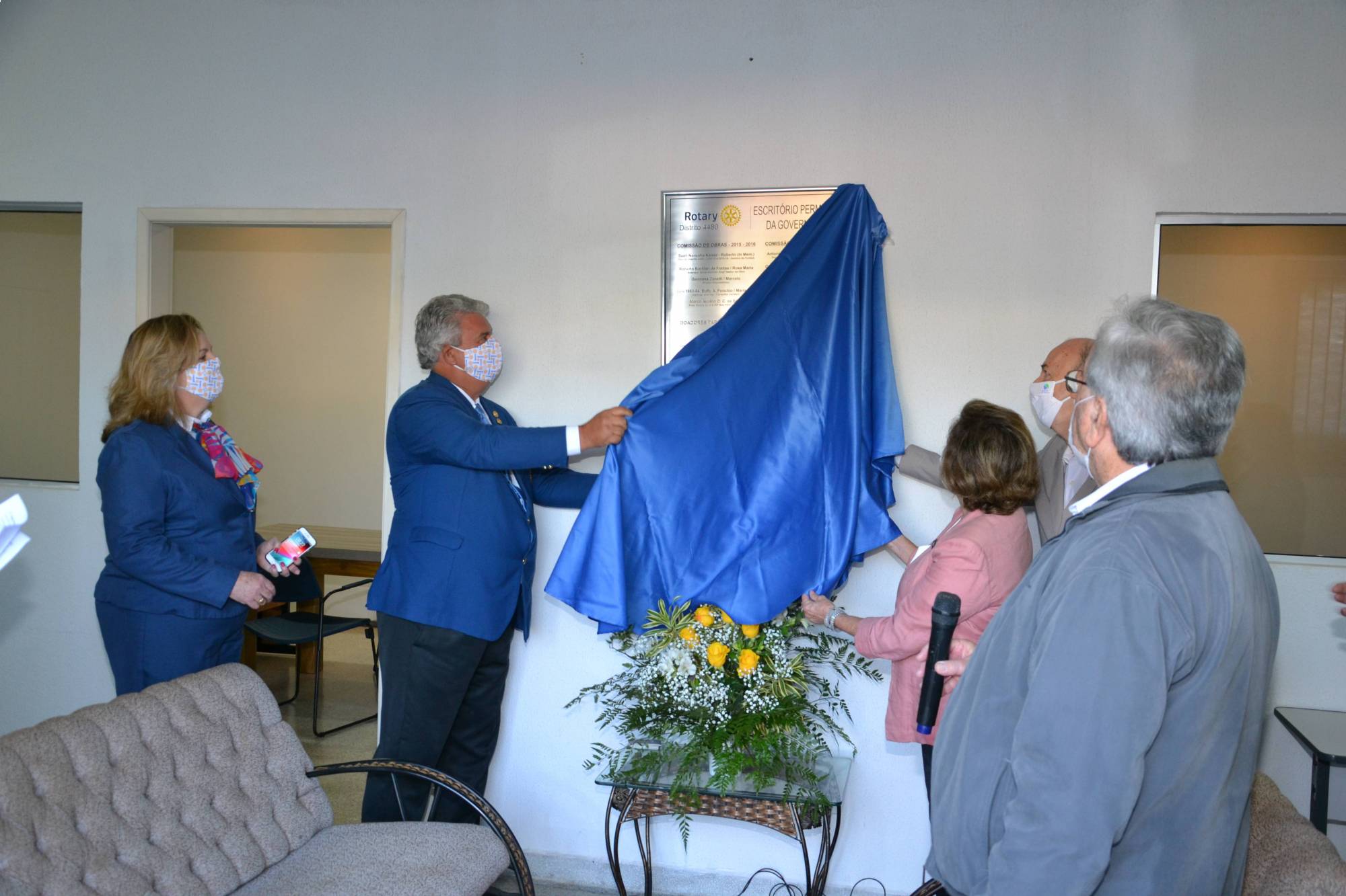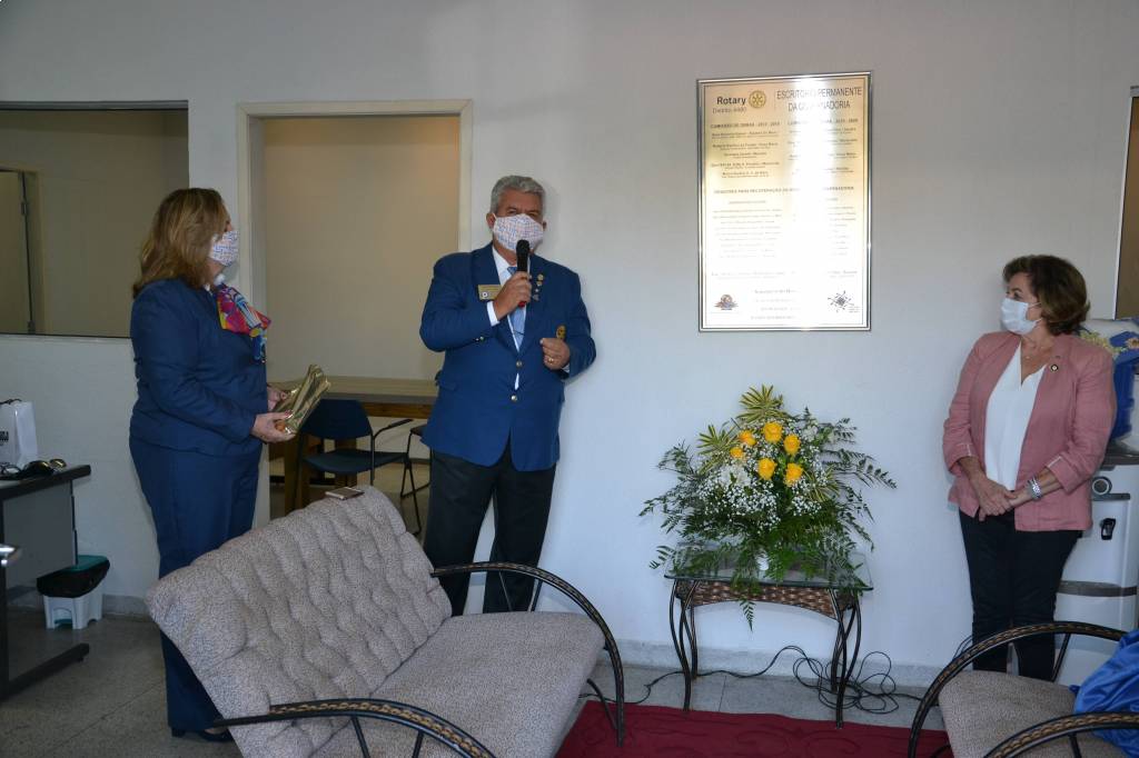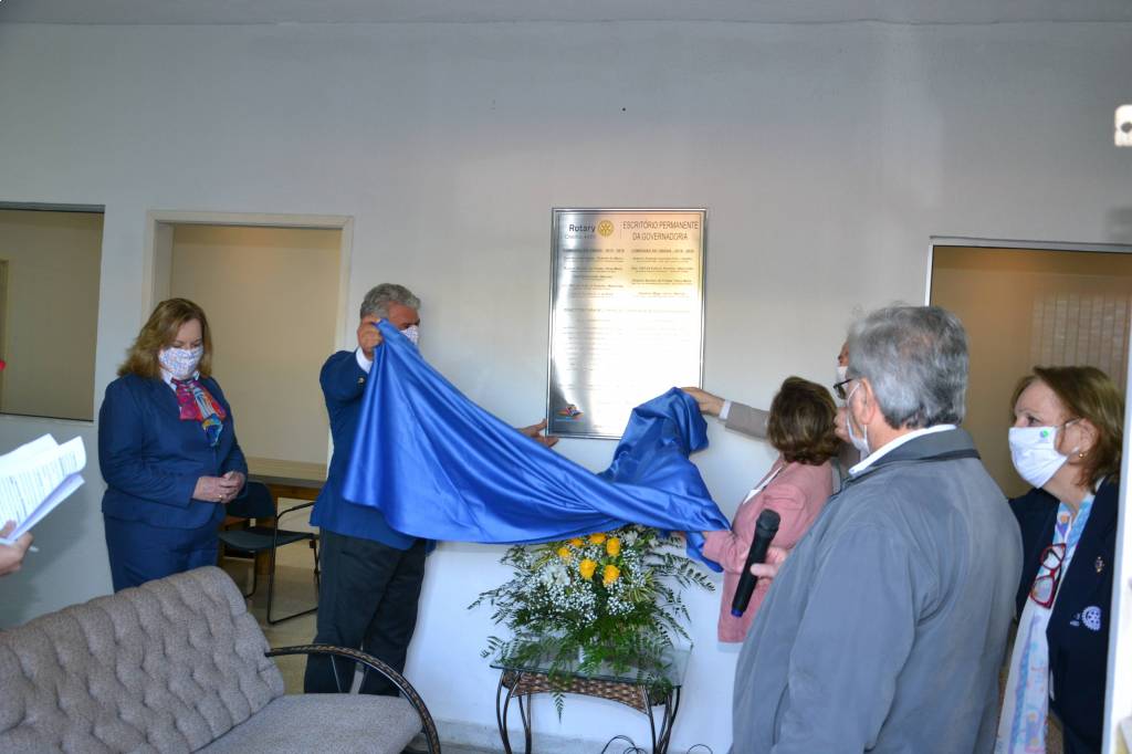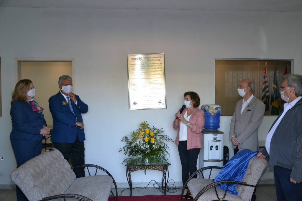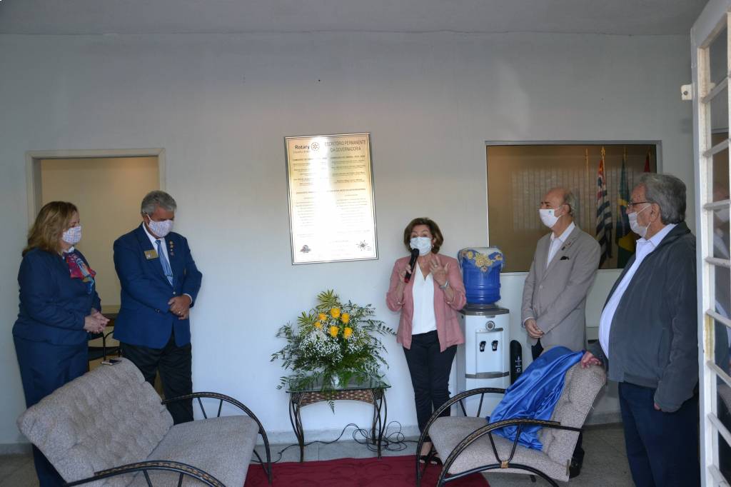 O governador Antonio Orlando Cavichia Filho e sua esposa Sandra, juntamente com os governadores Eufly Ponchio (1983-84) e Suely Kaiser (2009-10 e 2015-16), do governador designado Gerson Januário (2022-23), do representante da comissão de obras, Roberto Barilari e alguns convidados, inauguraram, na manhã deste sábado, 20/06, a nova sede do Distrito 4480, em São José do Rio Preto. O projeto teve início no mandato da governadora Sueli Kaiser e o prédio passou por adaptações e reformas, com recursos doados por alguns membros do Colégio de Governadores. Agora, a sede pode acolher todos os rotarianos, inclusive de outras cidades, que por ventura, estiverem visitando Rio Preto. No local, funciona toda a parte administrativa do Distrito.