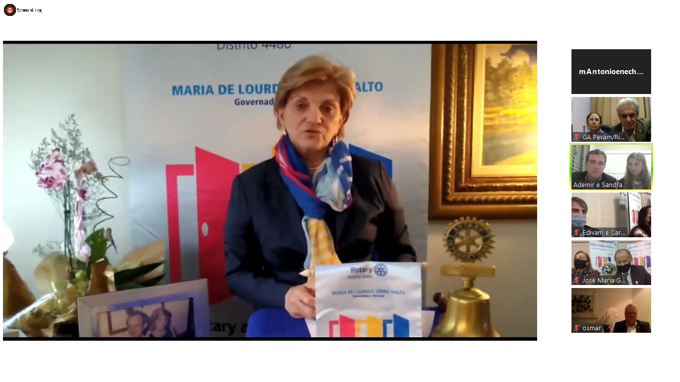 Em consequência da pandemia do novo coronavírus, as posses de presidentes e conselhos diretores dos clubes estão ocorrendo através de reuniões virtuais. Se, por um lado, existe um ponto negativo devido à falta da reunião presencial e o calor humano, por outro, proporciona que pessoas de todo o Distrito possam acompanhar on-line as transmissões. E é exatamente isso o que tem feito a governadora do Distrito 4480, Lourdinha Dalto.